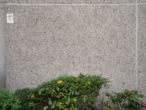 Die Ausstellung macht diese Geschichte sichtbar: Sogenannte Zeitfenster an Treppe, Fußboden, Pfeiler und Decke geben im Rahmen der Ausstellung den Blick auf die materielle Geschichte des Gebäudes frei. Was auf den ersten Blick unverändert wirkt, offenbart bei genauerer Betrachtung einen sensiblen Umgang mit der historischen Bausubstanz. Abgeblätterter Putz wird entfernt, Löcher werden geschlossen, was repariert werden kann, wird repariert oder umgestaltet – zum Beispiel alte Fenstergläser oder die Paneele der Hetaflex-Aluminium-Fassade, die im Zuge der Fassadensanierung im Frühjahr 2025 abgenommen wurden. Ergänzungen wie das Deckenleuchtsystem und Reparaturen des Bodenbelags aus den 1980er Jahren folgen den Prinzipien der Wiederverwertbarkeit.