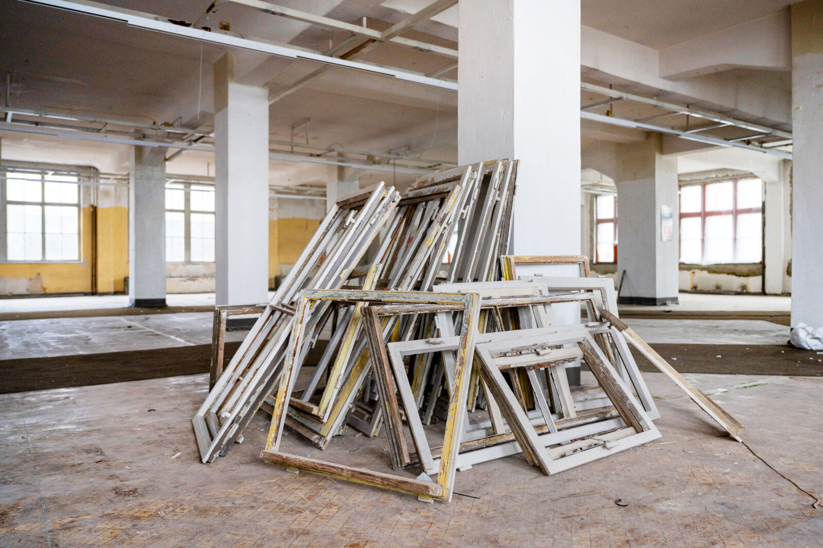 Exhibition set-up, ‘Algae | Rubble | CO2’, Former Zeeck Department Store, Dessau, 12 February 2026